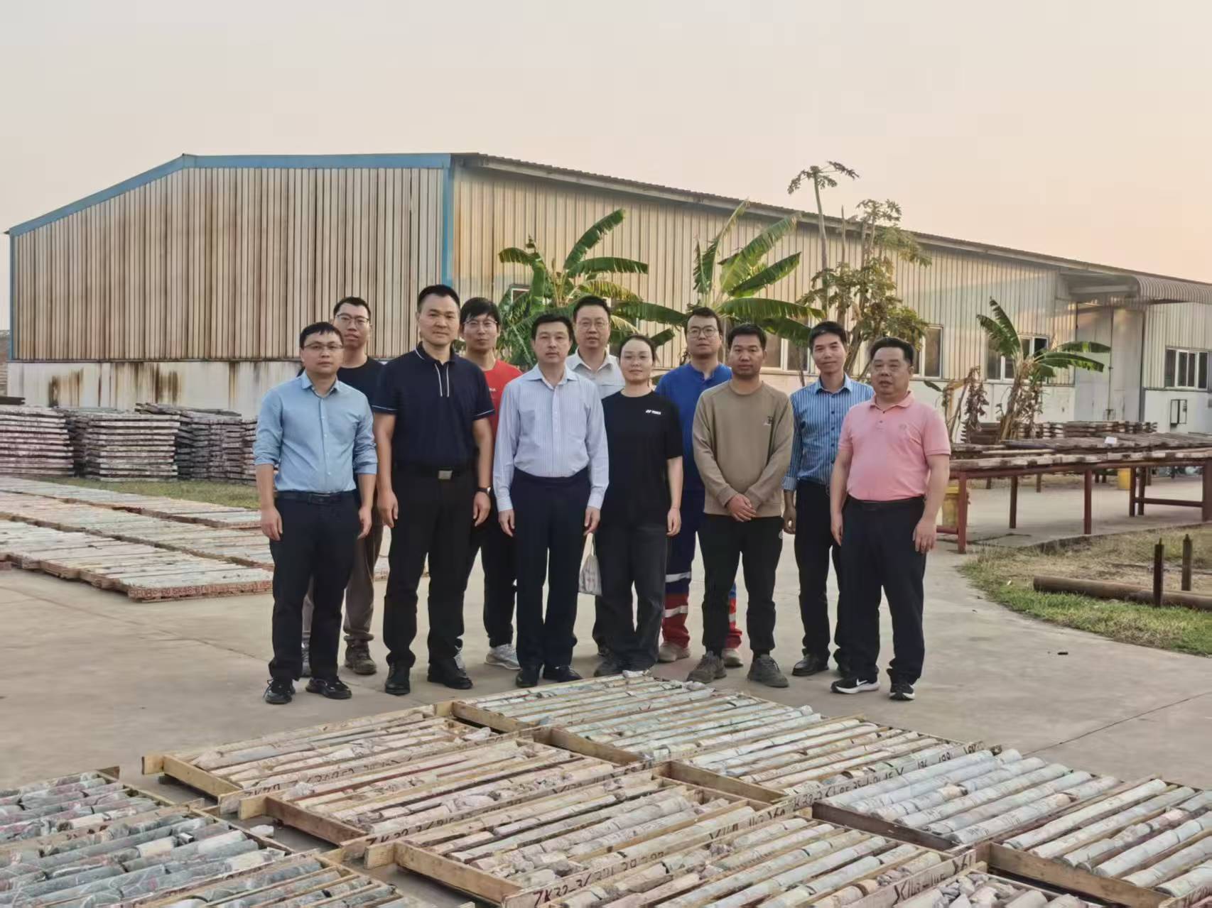 图|卢宗柳一行在桂林院赞比亚地勘公司岩芯库与部分干部员工合影